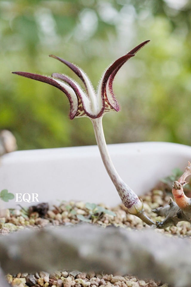 セロペギア・スタベリフォルミス 観葉植物 南アフリカ セロペギア エリオクエスト竜馬 美しい花が咲く観葉植物 矢じりのような蕾から独特な花を咲かせ、見る人を魅了します。その姿は、インテリアとしても楽しむことができます。育てる喜びと共に、お部屋に華やかさを添える一品です。